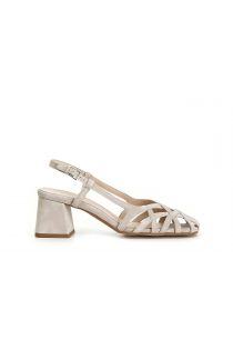 Zapatos de ante con jaula asimétrica trenzada. tacón de 5 cm forrado con la misma piel