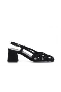 Zapatos de ante con jaula asimétrica trenzada. tacón de 5 cm forrado con la misma piel