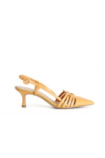 Zapatos de salón de piel abiertos por detrás con tiras y punta afilada. tacón h. 55 mm