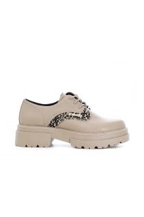 Zapatos derby de piel con aplique de piel de potro moteada. Suela ondulada y finos cordones.