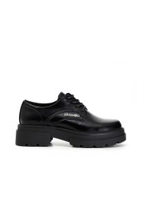 Zapatos derby de piel sintética con logotipo lateral y pespuntes a la vista.