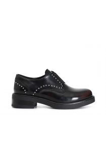 Zapato derby de mujer en piel sintética cepillada con elástico y micro tachuelas cromadas. la plantilla es de piel.