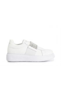 Zapatillas deportivas modelo slip-on adornadas con una banda elástica tachonada de pedrería. pala y plantilla de piel. suela tipo caja.