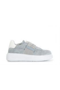 Zapatillas deportivas slip-on de ante adornadas con una banda de pedrería. pala y plantilla de piel. suela tipo caja.
