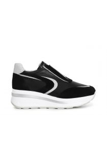 Zapatillas deportivas modelo slip-on de piel con inserciones de glitter. suela con cuña bicolor de 40 mm con logotipo en relieve.