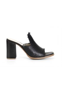 Mule de piel tejida. el forro y la plantilla son de piel. tacón grueso de 9 cm de altura.