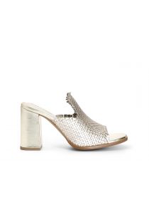 Mule de piel tejida. el forro y la plantilla son de piel. tacón grueso de 9 cm de altura.