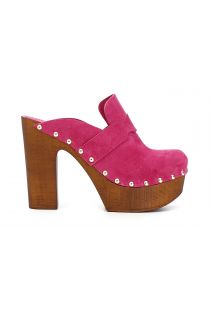Zuecos de madera en piel de ante disponible en 6 colores en tacón alto.