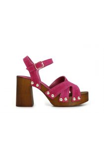 zuecos trenzados con tacón alto de madera y plataforma hot pink